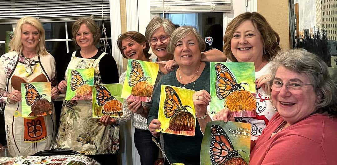 - A guided watercolor painting session led by Katherine